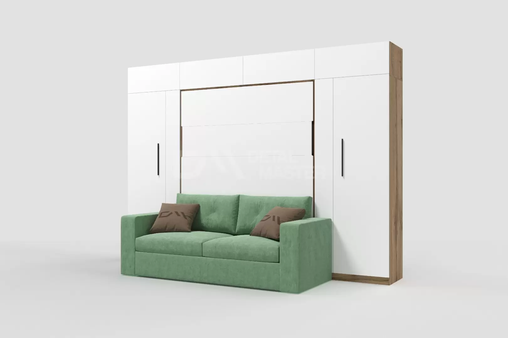 Шкаф-кровать трансформер с диваном "Deluxe platinum Balance" работает на механизме раскладывания собственной разработки "Balance". Кровать раскладывается легким движением руки, превращаясь в полноценное спальное место. Просто потяните за ножку-маятник, которая самостоятельно фиксируется в нужное положение при опускании.